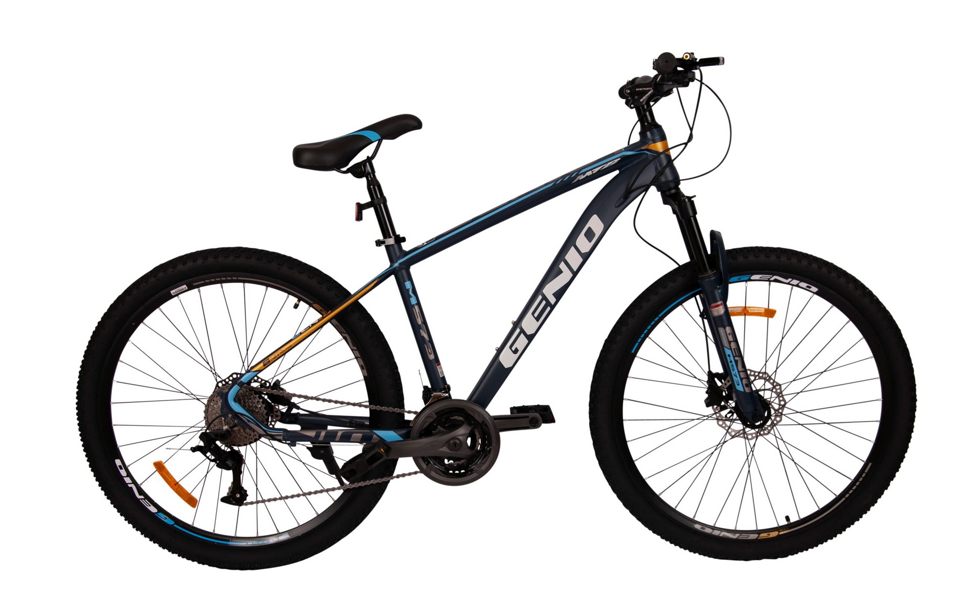 Denna sportiga mountainbike är utrustad med en stötdämpad framgaffel, vilket gör det lätt att navigera genom ojämn terräng. Med skivbromsar både fram och bak kan du enkelt anpassa nerbromsningen efter olika situationer. Cykeln har hela 27 växlar från Shimano, vilket gör att du enkelt kan justera din cykeltur efter avstånd och terrängtyp.