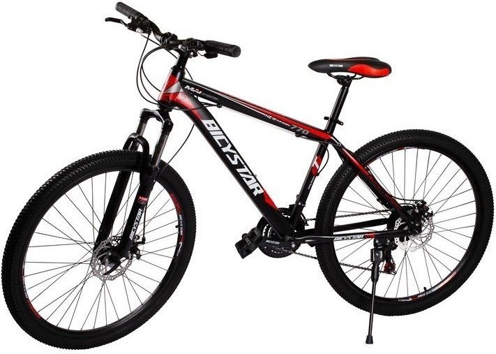 Sportig cykel anpassad för on och off-road. Sportig mountainbike med stötdämpad framgaffel så du kan ge dig an både terräng och vägar. Utrustad med skivbroms både fram och på bakhjulet för stark och anpassad nerbromsning. Cyklen har också 7 olika växlar så att man kan anpassa sin cykelfärd för olika situationer och distanser.