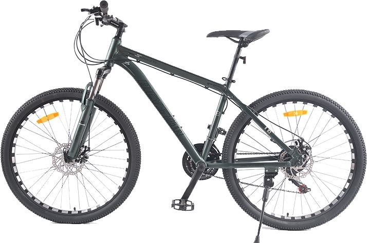 Sportig cykel anpassad för on och off-road. Sportig mountainbike med stötdämpad framgaffel så du kan ge dig an både terräng och vägar. Utrustad med skivbroms både fram och på bakhjulet för stark och anpassad nerbromsning. Cyklen har också hela 27 olika växlar så att man kan anpassa sin cykelfärd för olika situationer och distanser.