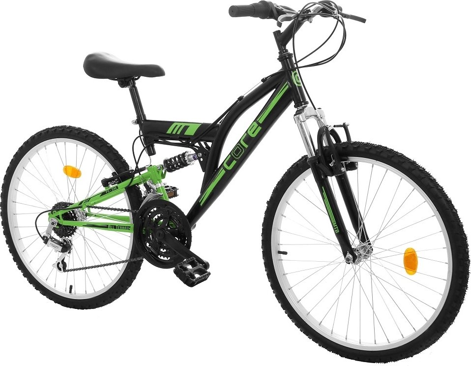 Sportig mountainbike med bakfjädring och stötdämpad framgaffel gör de enkelt att ta sig an terräng. Utrustad med V-broms både fram och på bakhjulet för anpassad nerbromsning. Cyklen har också hela 18 olika växlar från Siguan för att enkelt kunna anpassa sin cykelfärd för olika situationer och distanser.
