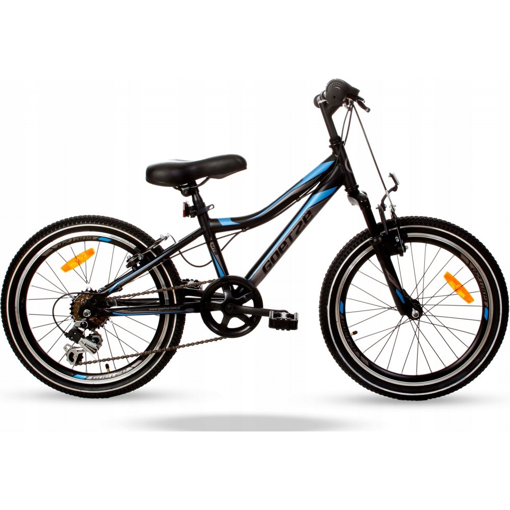 Sportig mountainbike för barn. Med en stor sadel och stötdämpad framgaffel så är de enkelt att ta sig an terräng. Utrustad med V-broms både fram och på bakhjulet för anpassad nerbromsning. Cyklen har också 6 olika växlar för att enkelt kunna anpassa sin cykelfärd för olika situationer och distanser.