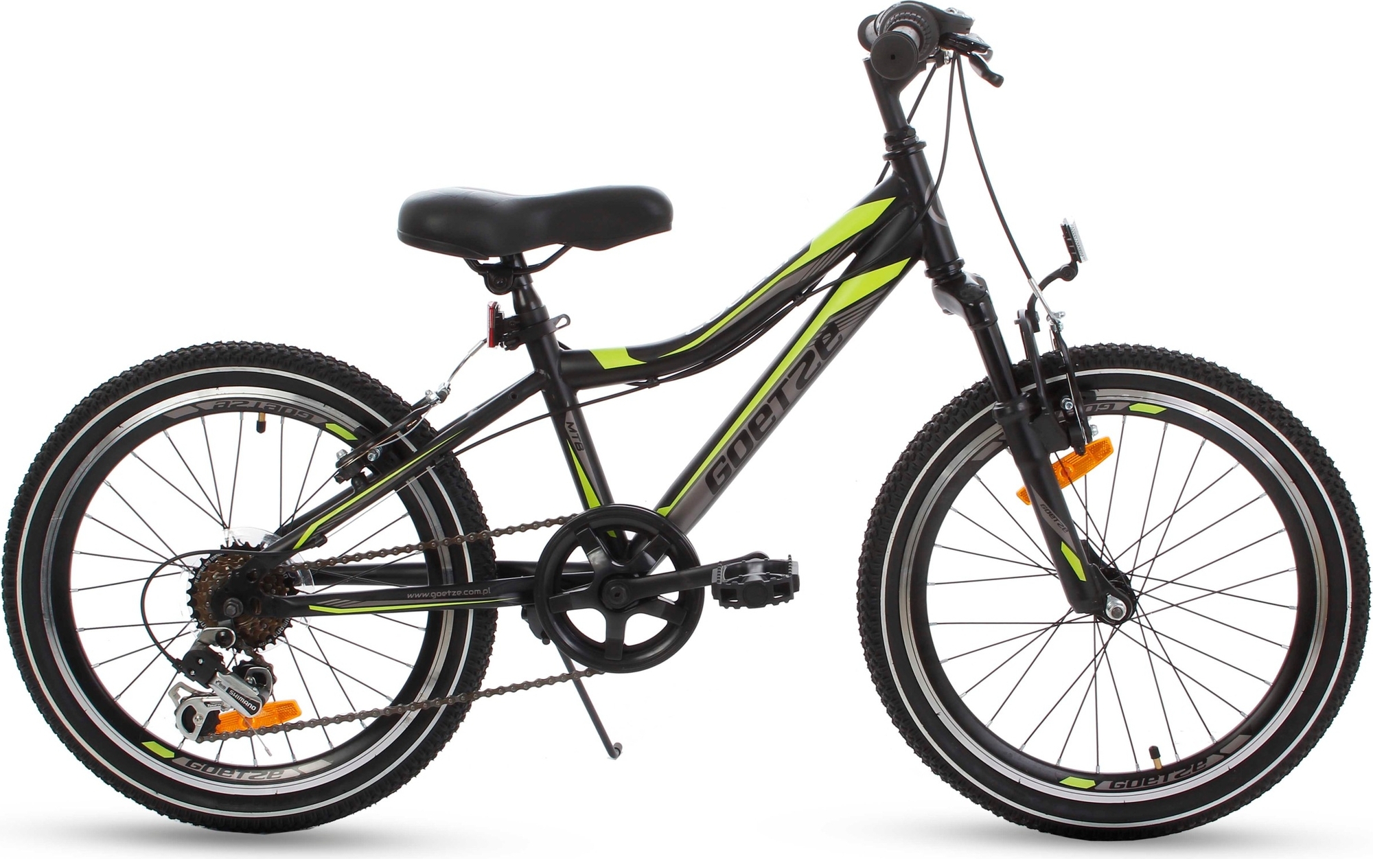 Sportig mountainbike för barn. Med en stor sadel och stötdämpad framgaffel så är de enkelt att ta sig an terräng. Utrustad med V-broms både fram och på bakhjulet för anpassad nerbromsning. Cyklen har också 6 olika växlar för att enkelt kunna anpassa sin cykelfärd för olika situationer och distanser.