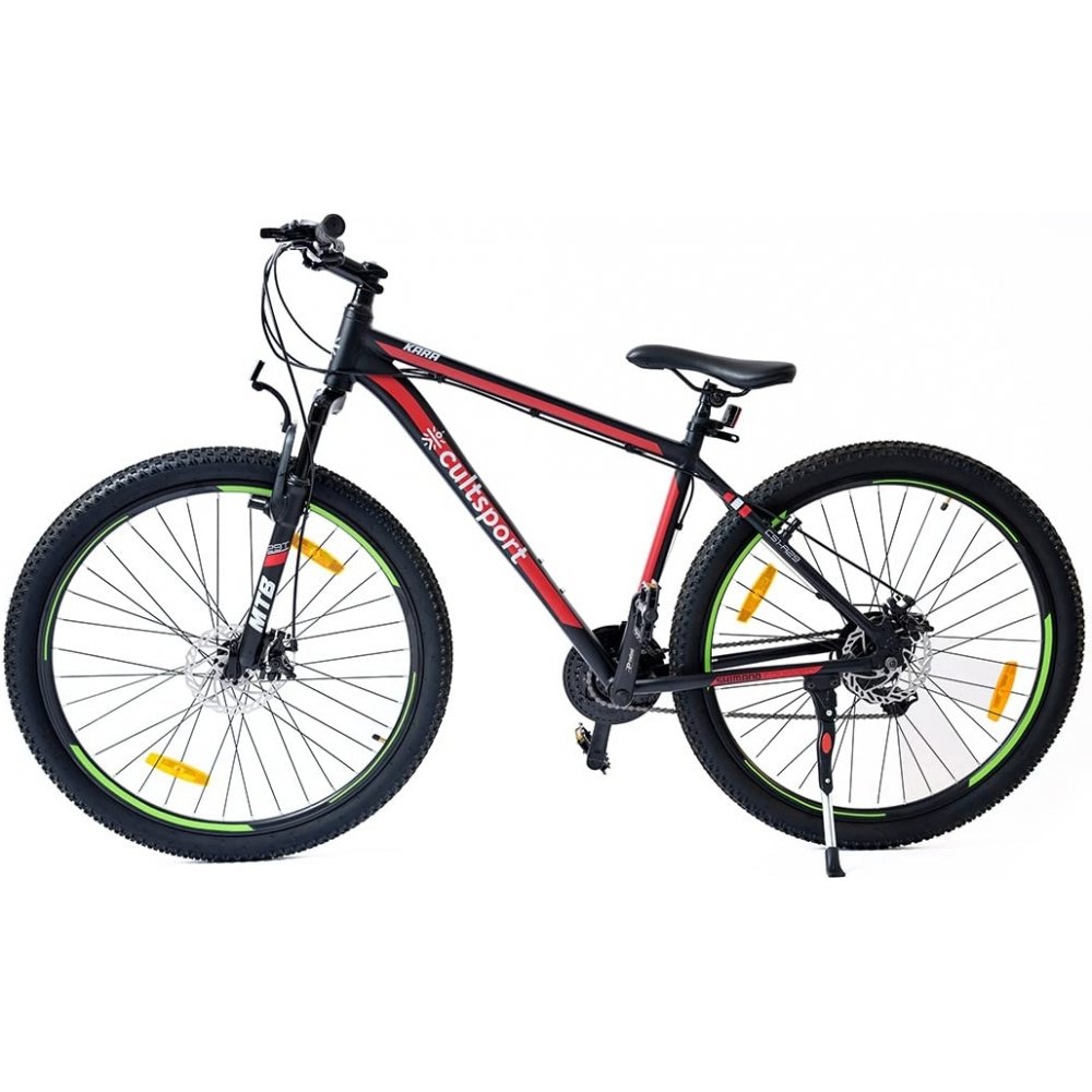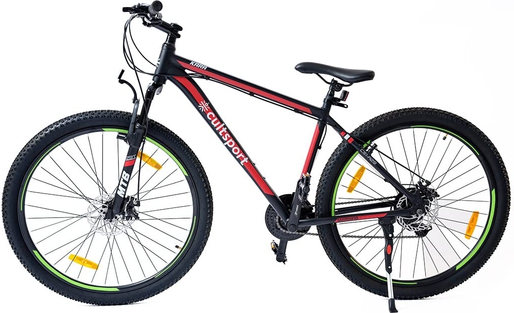Med Mountainbike Kara 29" får du en mountainbike som är perfekt för både män och kvinnor i åldersgruppen 15 år och uppåt. Den stiliga svarta och röda designen på denna mountainbike kombinerar elegans med funktionalitet, vilket gör den till ett utmärkt val för både landsvägar och stigar. Denna mountainbike är utrustad med robusta komponenter, vilket gör att den klarar av tuffa terränger med lätthet. Oavsett om du cyklar i skogen, på grusvägar eller genom staden, så erbjuder Mountainbike Kara 29" en bekväm och sportig upplevelse. Gör varje tur minnesvärd med denna imponerande mountainbike som verkligen lever upp till sina löften om både prestanda och stil. Välj Mountainbike Kara 29" och upptäck friheten av att cykla i naturen eller på vägen med en pålitlig och snygg mountainbike!