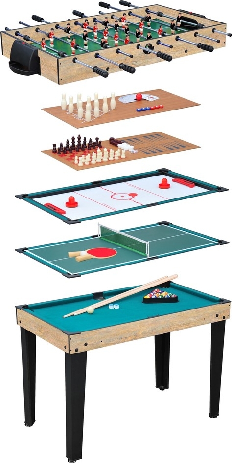 Spelbordets yta går enkelt att skifta från spelplan till spelplan som behändigt står på ett stabilt stativ med ben i bra ståhöjd. Trots sin stora mängd spel tar spelbordet inte stor plats. För att bland annat spela biljard behövs ett utrymme på cirka 4 m². När du inte spelar är det lätt att flytta in till kanten.