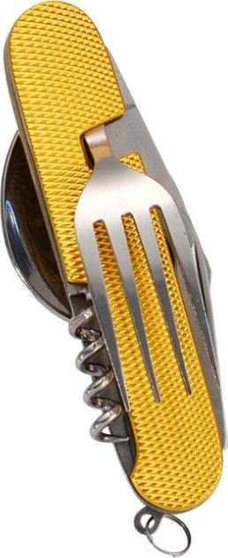 Ett multiverktyg som specialiserar sig på camping. Fällknivsverktyget innehåller gaffel, sked, kniv, korkskruv, kapsylöppnare och synål. Enkelt att förvara och kan rädda dagen om man är ute i naturen. Ett måste ha redskap!