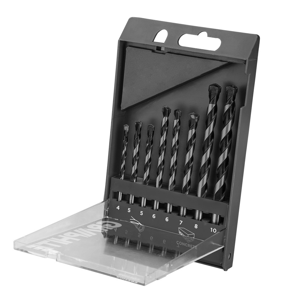 Centrumborrsats för murverk (referensnr. 57H351) 4,0-10,0 mm diametrar, med spets av solid hårdmetall.