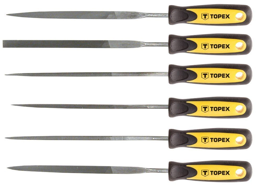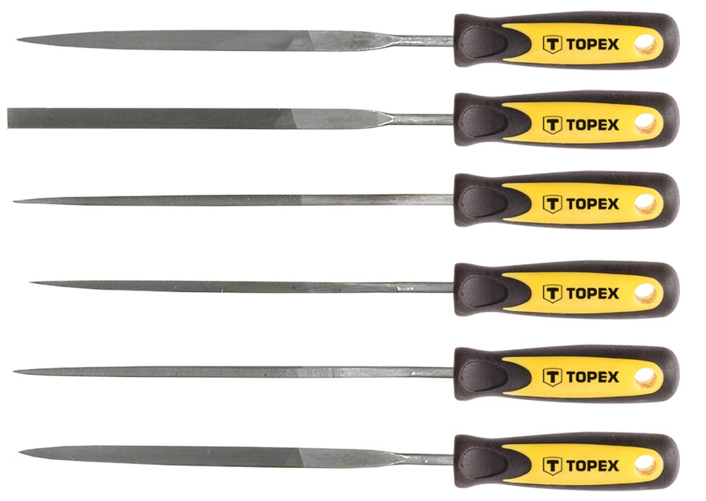 5 olika nålfilar, 150 mm långa. Främst för precisionsfilning av metall. Ergonomiskt tvåmaterialsgrepp.