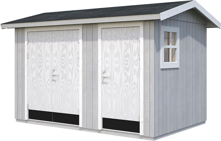 Olaf Förråd & Cykelskjul har ett klassiskt förråds utseende med stående träpanel och sadeltak som du själv kan sätta din prägel på genom val av ytbehandling/färg och takmaterial.
