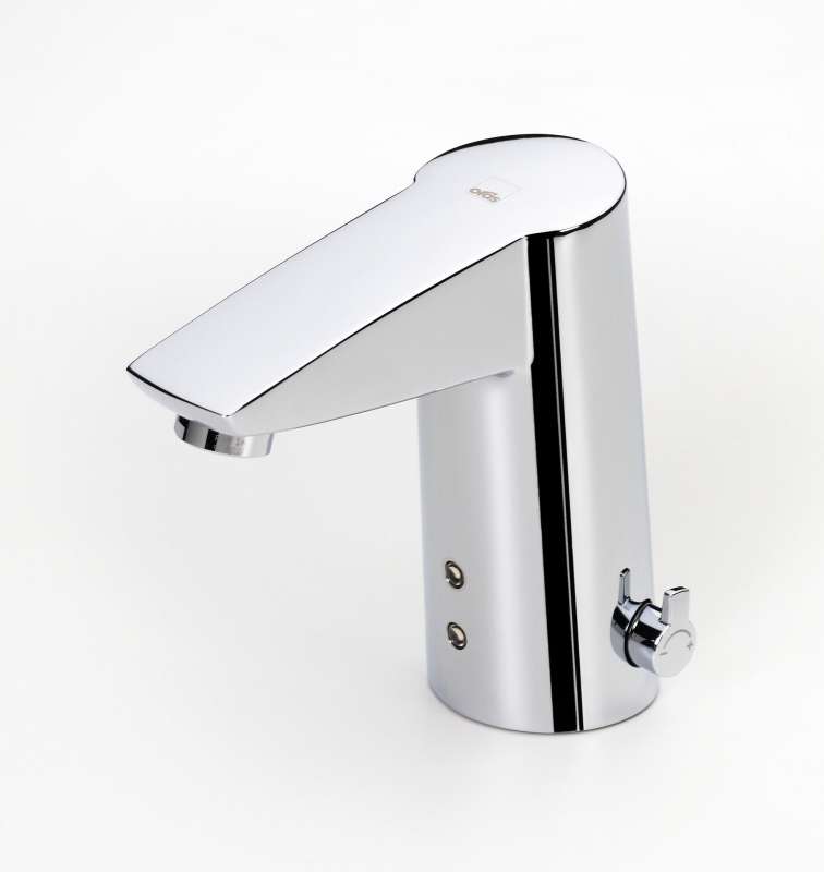 Oras Cubista beröringsfri tvättställsblandare med temperaturvred Batteridrift 6 V. Blandaren är utrustad med smutsfilter, backventiler, flexibla anslutningar och Oras Autofocus sensor som säkerställer att ingen justering av blandaren är nödvändig vid installation. Blandarens pilotventil reagerar med hjälp av impulsteknik vilket ger batteriet lång livslängd. Den beröringsfria funktionen i kombination av ett lågt flöde (6 l/min) ger en mycket låg vatten- och energiförbrukning.