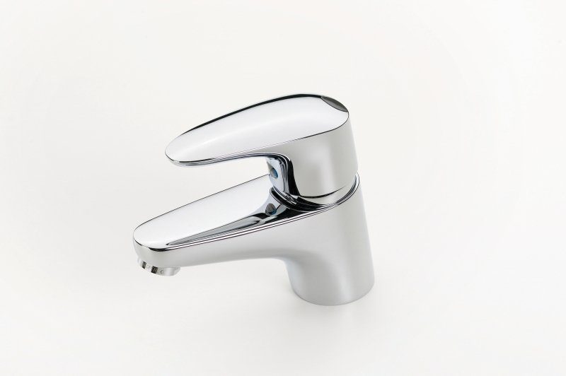 Oras Vega tvättställsblandare Bekväm två-komponents spak med eco-knapp för begränsning av temperatur och flöde. Högre temperatur och ökat flöde fås genom att trycka in eco-knappen samtidigt som spaken lyfts eller vrids förbi spärrläget.