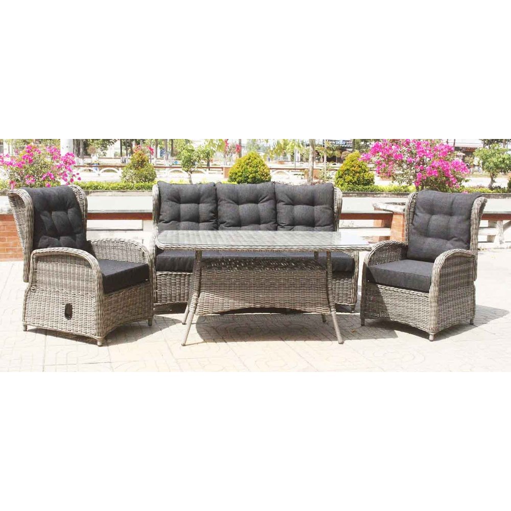 Orleans utemöbelgrupp hög rygg med recliner (3+1+1) - Grå konstrotting: