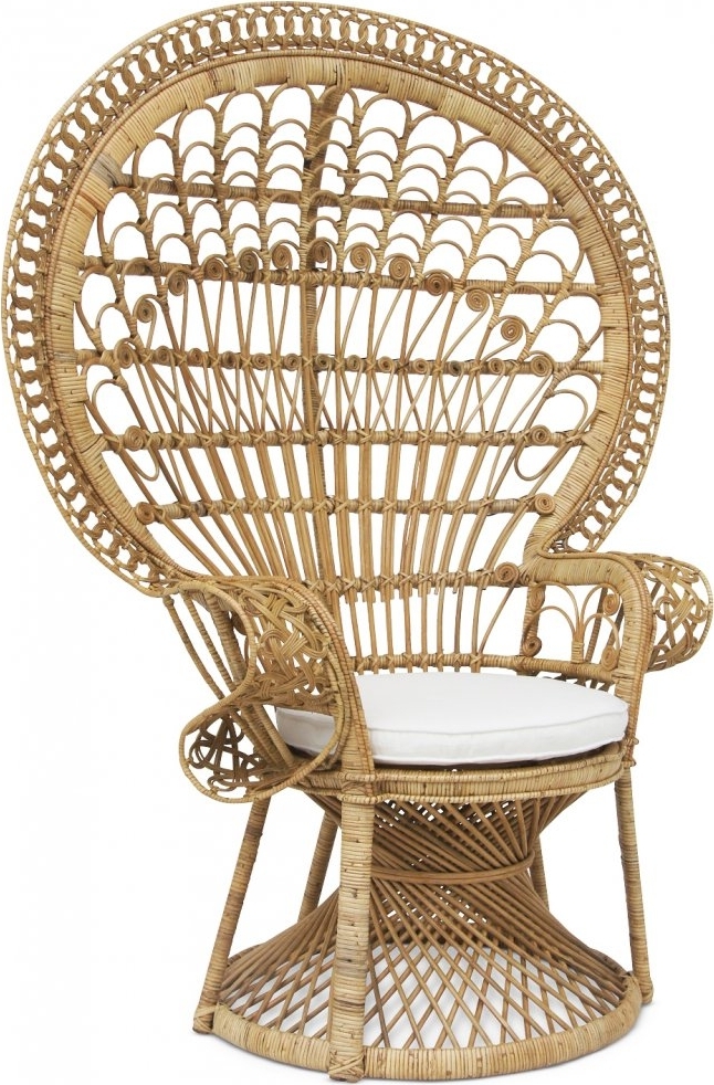Upplev en känsla av elegans med vår påfågel fåtölj, en klassisk möbel i flätad och bunden naturlig rotting. Detta fantastiska handarbete garanterar långvarig hållbarhet och skönhet. Fåtöljen är utrustad med en rund sittdyna i ljust tyg som ger både komfort och en stilren touch till din inredning.