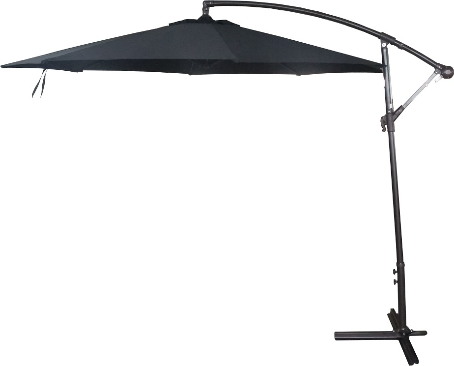 Svart parasoll med diameter på 300 cm och kryssfot.