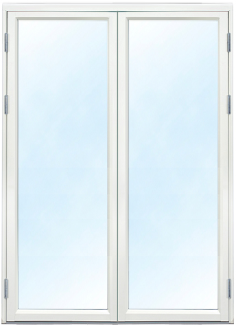 Helglasad aluminiumbeklädd parfönsterdörr i 3-glas med mycket god isoleringsförmåga (2 st lågemissionsglas (LE) från Sunnerbo fönster. Säkerhetsglas både utvändigt och invändigt.