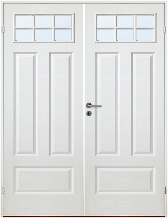 Parinnerdörren Gotland är en vitmålad parinnerdörr i klassisk spegelindelning för bra ljusgenomsläpp. Hängning (höger/vänster) behöver inte bestämmas i förväg eftersom insticksgångjärnen är symmetriska och du kan vända låskolven med ett enkelt handgrepp.