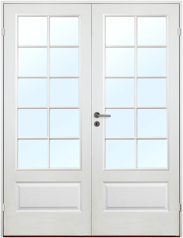 Parinnerdörr Gotland är en vitmålad parinnerdörr i klassisk spegelindelning för bra ljusgenomsläpp.