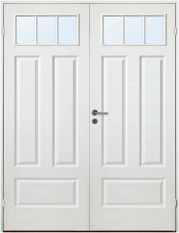 Vitmålad parinnerdörr i klassisk spegelindelning för bra ljusgenomsläpp.