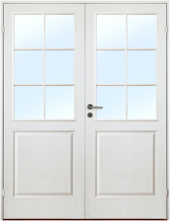 Parinnerdörr Gotland är en vitmålad parinnerdörr i klassisk spegelindelning för bra ljusgenomsläpp.