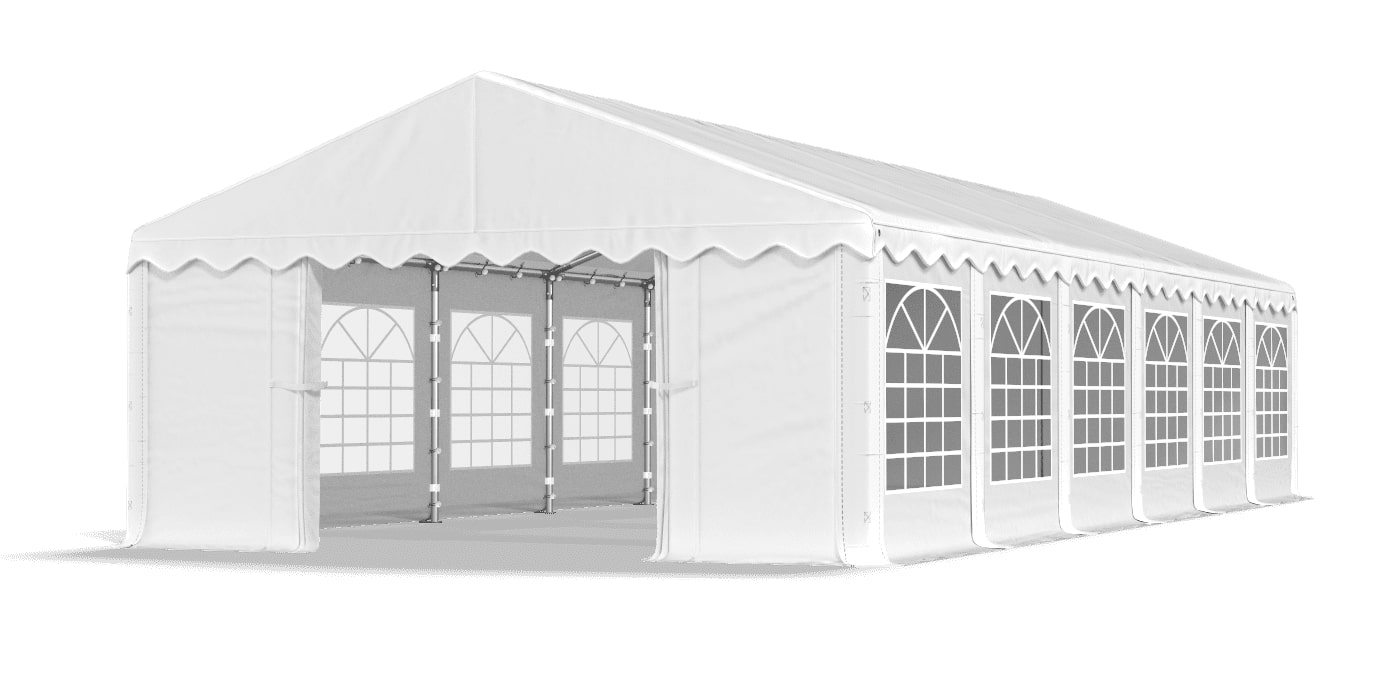 Sidoväggarna är tillverkade av tjock och tålig PE presenning 240g/m2 med stor funktionella dekorfönster med spröjs. Höjden på väggarna är 2 m. Med hjälp av fönsterna som är placerade på varje två-meter segment, får tältet en mer utseendemässigt tillfredsställande design, vilket gör det perfekt för studentfesten, kalas, högtider, samt utställningar och evenemang. Fönsterna tillåter dagsljuset att tränga igenom, vilken ger en behagande och avslappnande känsla vid utomhusvistelsen, samtidigt som man är skyddad mot ohyra och oönskat väderomslag. Väggarna monteras på varje två-meter segment, med hjälp av speciella elastiska band, vilket även gör det möjligt att fritt välja bort väggar för extra öppningar, så du kan anpassa efter dina egna behov.