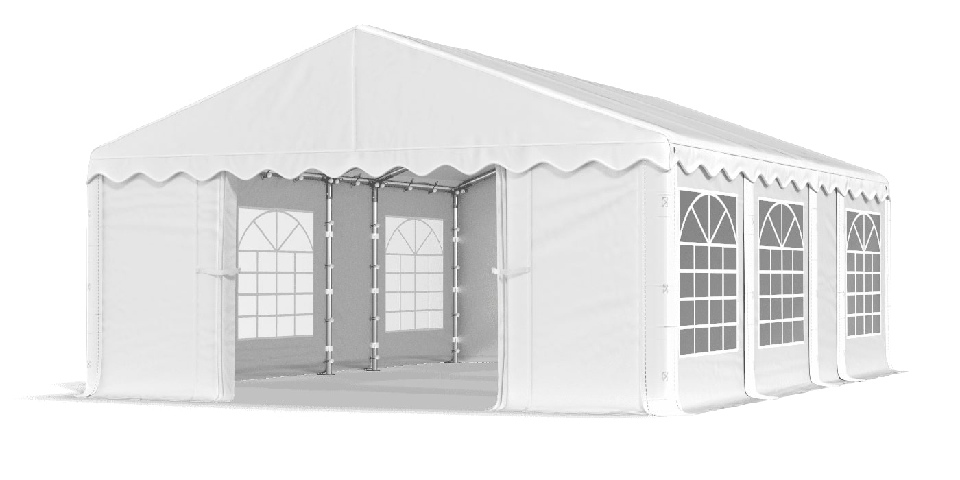 Sidoväggarna är tillverkade av tjock och tålig PE presenning 240g/m2 med stor funktionella dekorfönster med spröjs. Höjden på väggarna är 2 m. Med hjälp av fönsterna som är placerade på varje två-meter segment, får tältet en mer utseendemässigt tillfredsställande design, vilket gör det perfekt för studentfesten, kalas, högtider, samt utställningar och evenemang. Fönsterna tillåter dagsljuset att tränga igenom, vilken ger en behagande och avslappnande känsla vid utomhusvistelsen, samtidigt som man är skyddad mot ohyra och oönskat väderomslag. Väggarna monteras på varje två-meter segment, med hjälp av speciella elastiska band, vilket även gör det möjligt att fritt välja bort väggar för extra öppningar, så du kan anpassa efter dina egna behov.