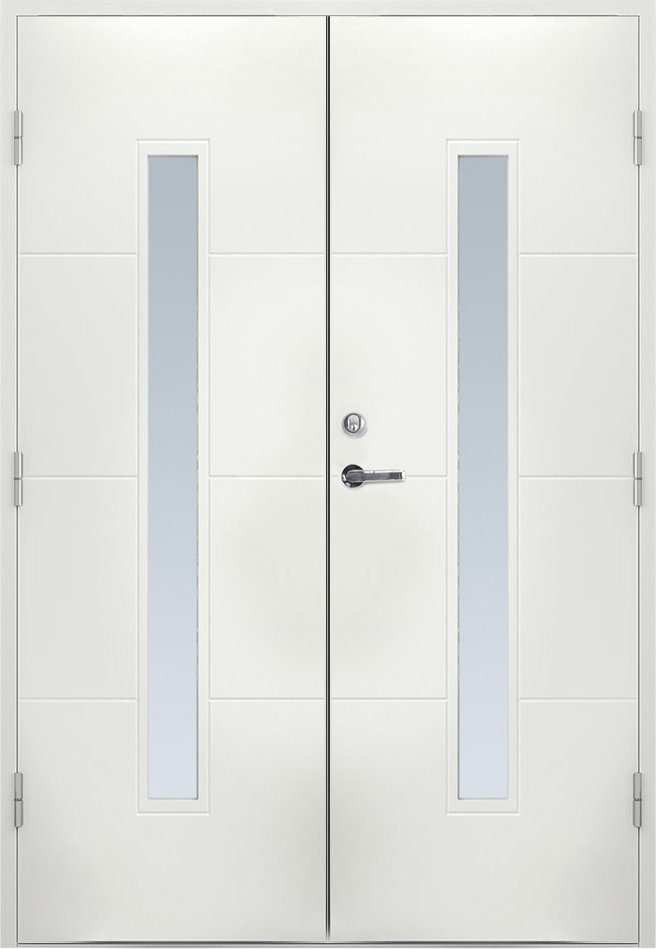 - Stomme: Konstruktion i furuträ med 51 mm värmeisolering, samt 0,5 mm aluminiumplåt på både in och utsida av dörren.