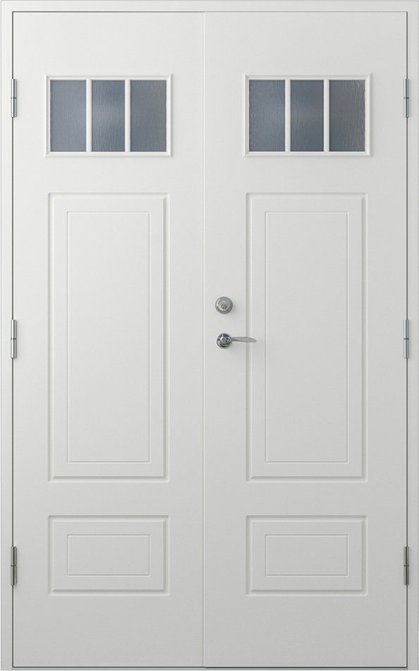 Parytterdörr med glas i serien Louise. Dörren kan anpassas precis efter dina behov vad det gäller mått, färg, glastyp, öppningshåll och mycket mer.
