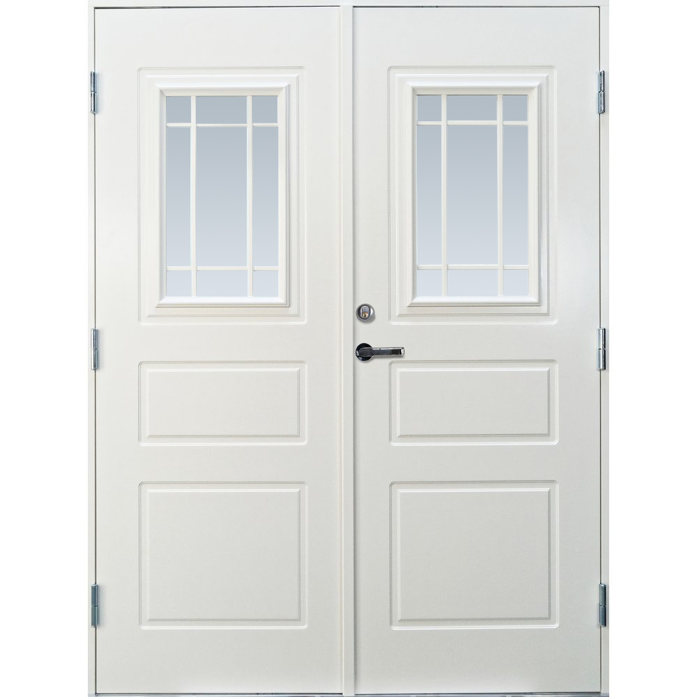 - Stomme: Konstruktion i furuträ med 51 mm värmeisolering, samt 0,5 mm aluminiumplåt på både in och utsida av dörren.