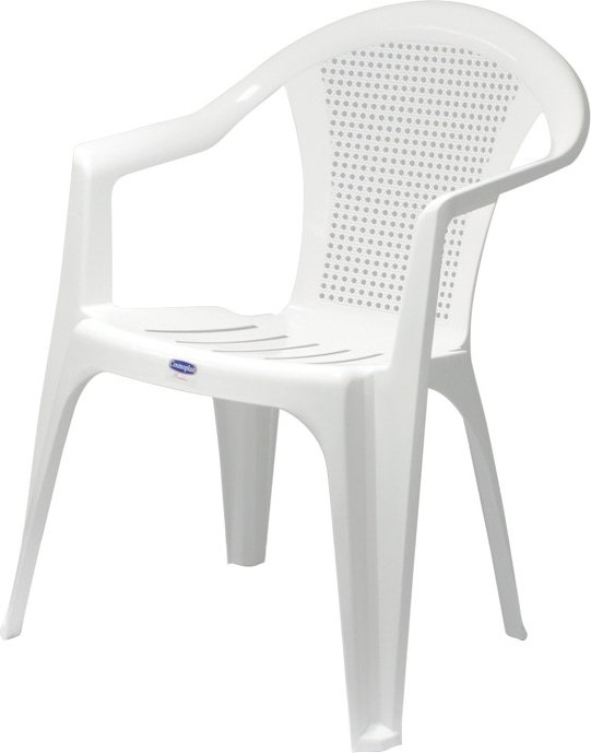 Stol tillverkad i tålig plast som tål regn och sol utan problem.