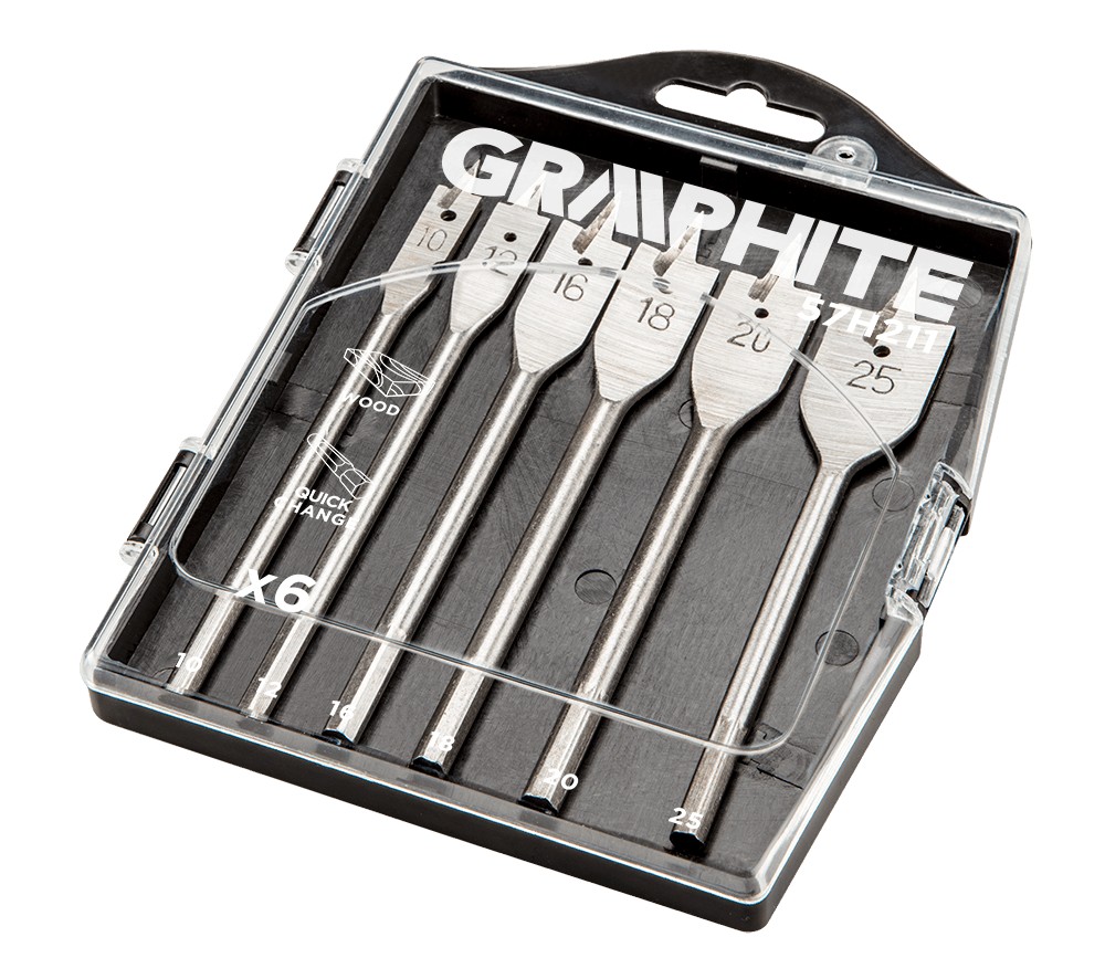 Platt träborr 10-25 mm, 6 delar - GRAPHITE