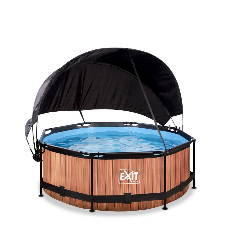 Pool ø244x76cm är en rund pool med ram och en trä-look. Den kompakta poolen innehåller en filterpump och ett solsegel, som skyddar dig mot solen på sommaren. Letar du efter en rolig men också en unik rampool av hög kvalitet för din trädgård?