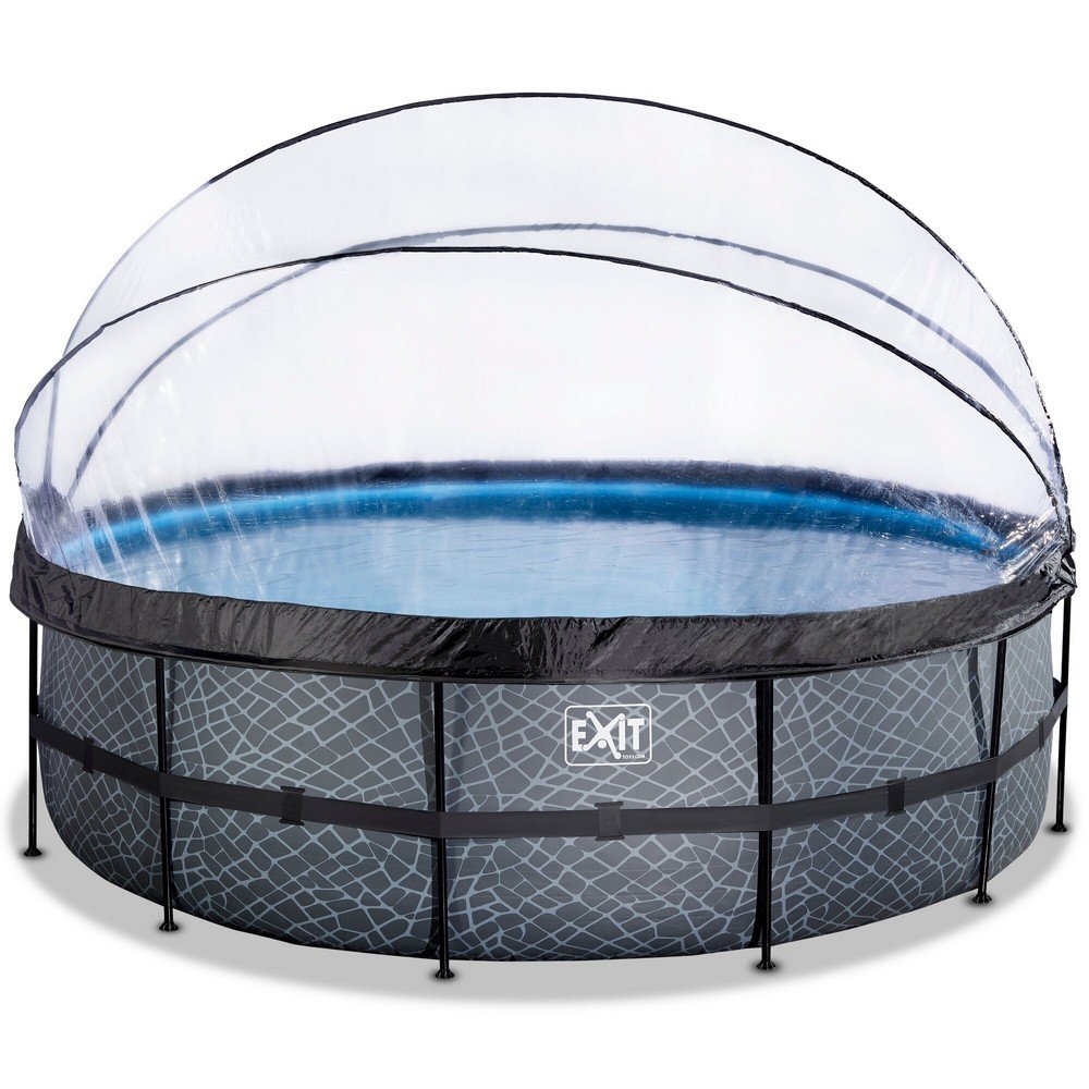 Pool ø488x122cm med tak och sandfilter och värmepump - Grå