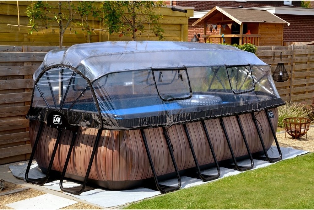 Kupolen är enkel att manövrera, tack vare hjälpande gångjärn. Med kupolen är det enklare att hålla poolen ren från löv och smuts.