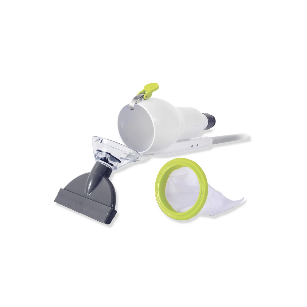 Dammsugare för pooler med mjuka sidor. Sugslangen kopplas till poolens pump. Dammsugaren har inbyggt filter som fångar upp smutsen direkt och utsätter därmed inte pumpfiltret för extra smuts.