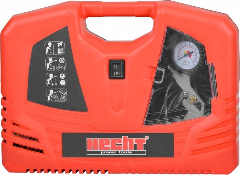 Portabel luftkompressor - 1100W med tryckmätare för däcktryck. Meföljande 9 olika munstycken.