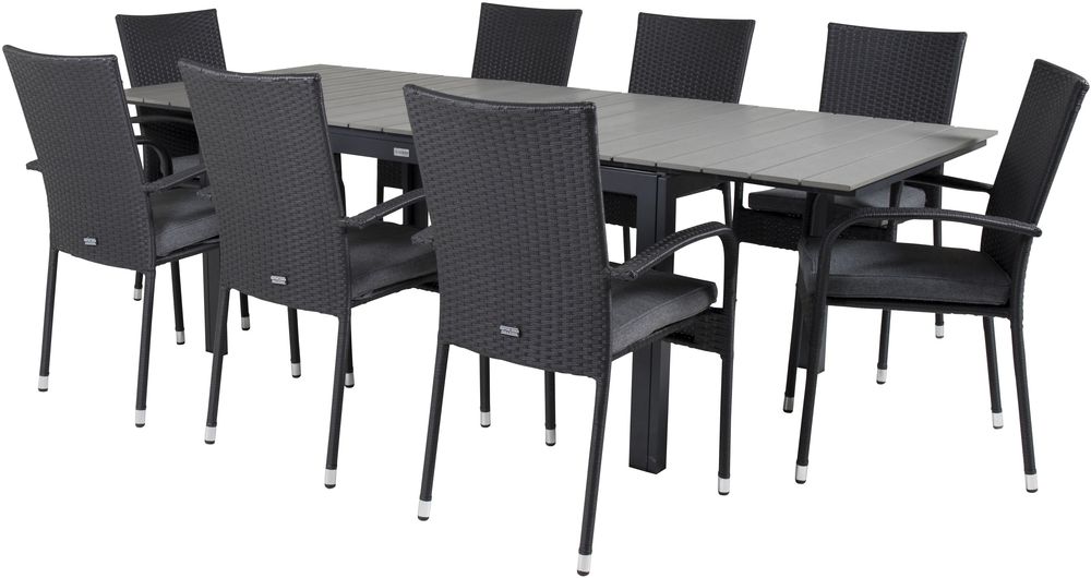 Prässebo Matgrupp (160x100) - Svart/Grå - 8 Stolar