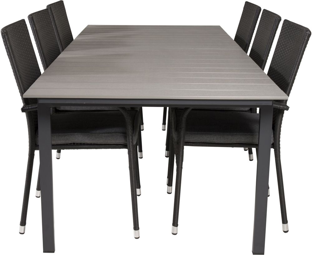 Prässebo Matgrupp (224x100) - Svart/Grå - 6 Stolar