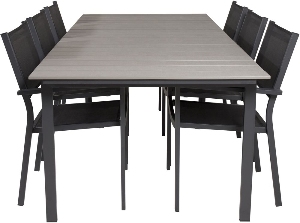 Prässebo Matgrupp (224x100) - Svart/Grå - 6 Stolar