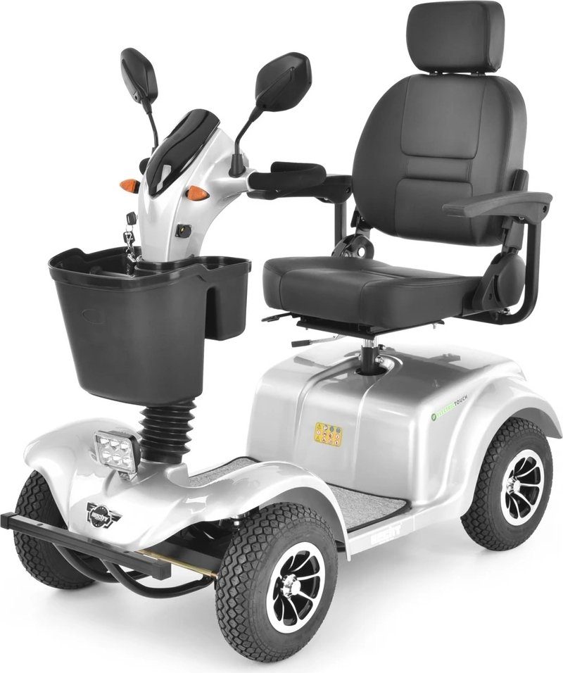 Promenadskoter för äldre och funktionshindrade eller funktionshindrade. Skotern har en bekväm stol som går att justera. Efter ett enkelt tryck på en spak kan stolen också vridas för att göra det lättare att gå av och på. Scootern styrs av spakar på styret, på manöverpanelen är det möjligt att bland annat begränsa maxhastigheten med en vridreglage. Under styret finns en praktisk korg för förvaring av personliga tillhörigheter eller mindre inköp.