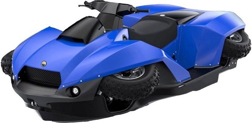 Det enda du behöver göra är att med ett enkelt knapptryck fälla in hjulen och vips, så har ditt fordon förvandlats till en lika kraftfull vattenskoter.