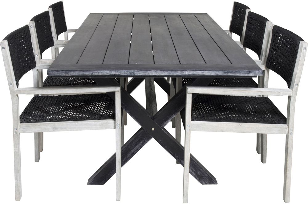 Ramsjö Matgrupp (200x100) - Whitewash/Svart - 6 Stolar