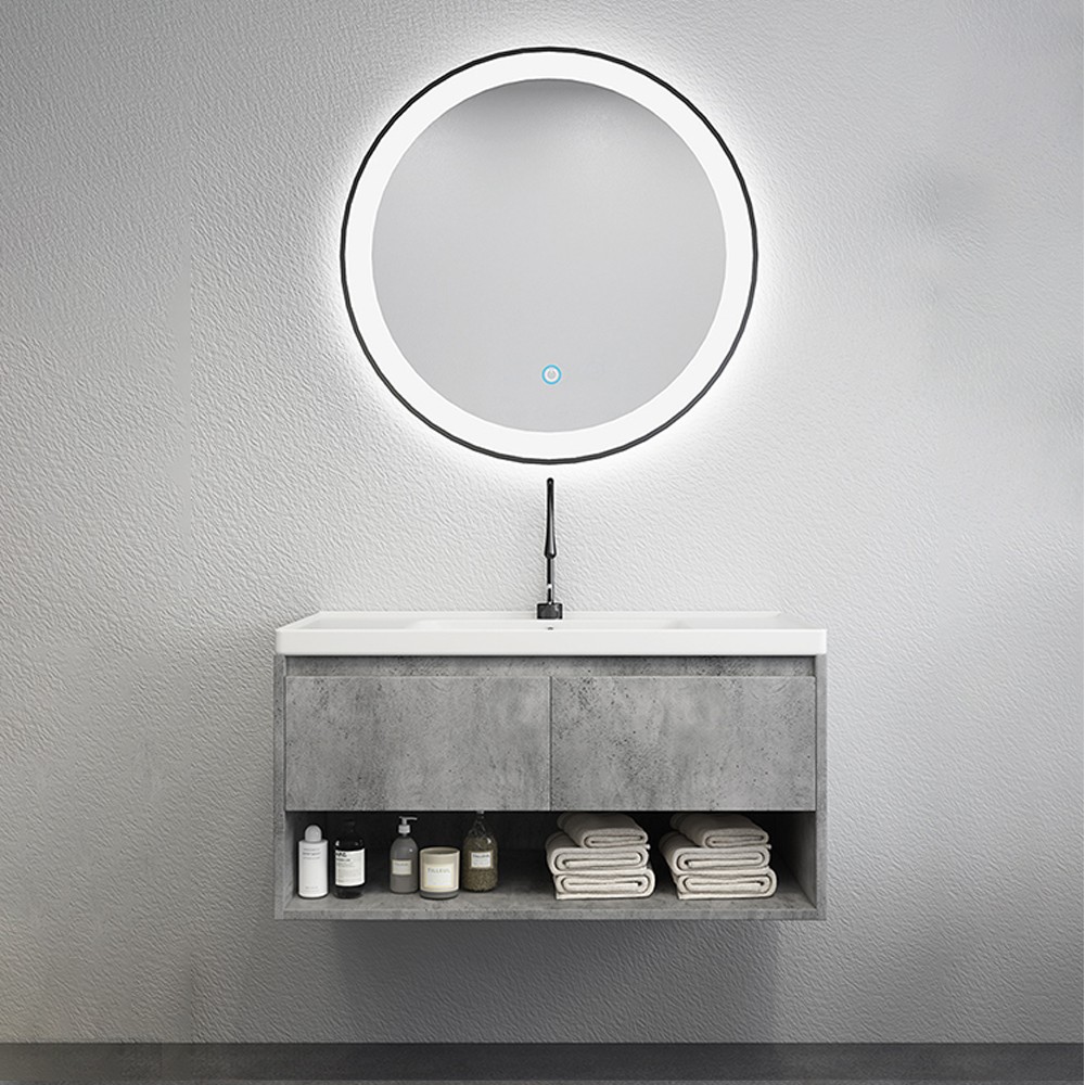 Badrumspaket Riga har en matchande spegel inkluderat, samt snygg betongimitation som platsar inom ramarna för industriell design, samtidigt som den möter upp skandinavisk design med sitt stilrena formspråk.