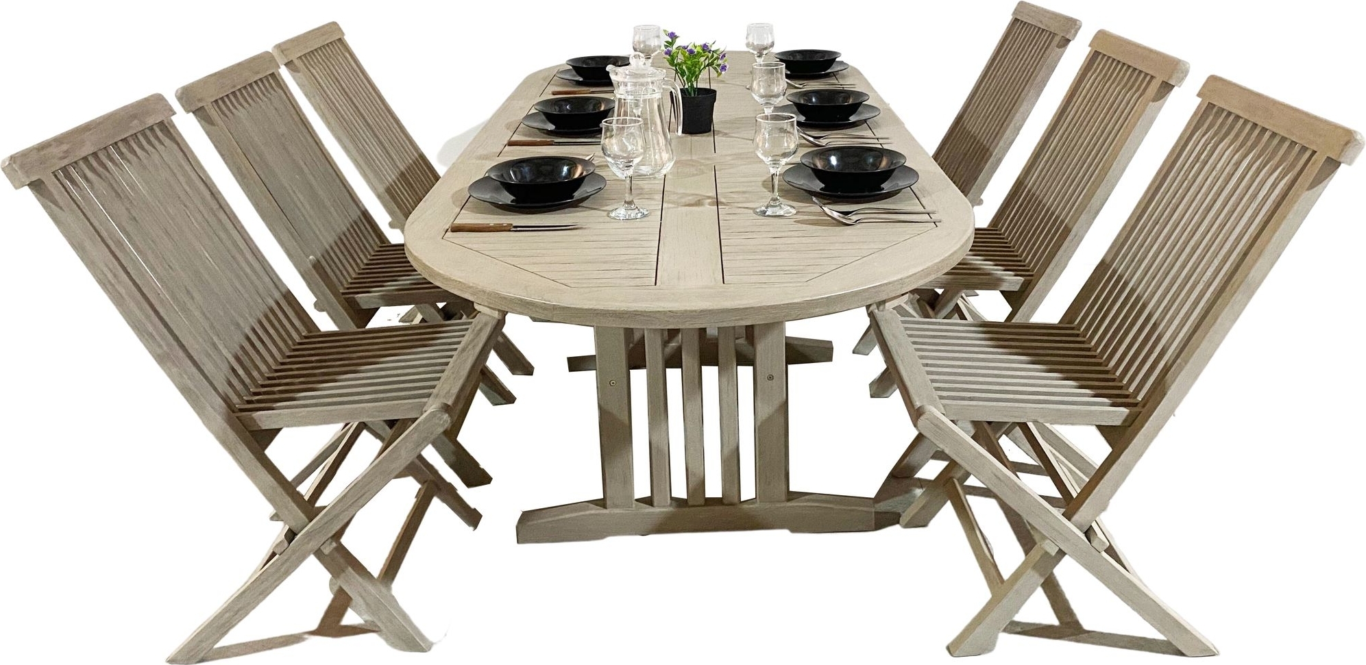 Saltö ovalt matbord i teak 150-210 cm butterfly - Grå teak