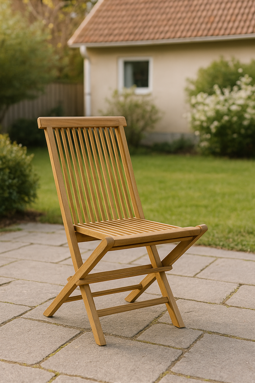 För att bevara den naturliga teakfärgen rekommenderas regelbunden behandling med teakolja. Om möblerna lämnas obehandlade utomhus utvecklar de en vacker silvergrå patina. Som med alla trämöbler är det viktigt att torka bort fukt och spill innan inoljning för att förlänga livslängden.