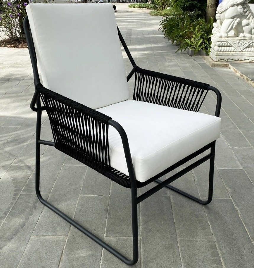 Sandhamn väldesignade produkter är gjorda för att det svenska sommarklimatet. Stolen är tillverkad i mattsvart pulverlackerat galvaniserat stål. Vita snygga dynor ingår. Svart fallskärmsrep på sidorna och ryggen.
