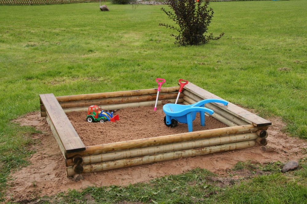 Vi är mycket nöjda med denna sandlåda. Lagom stor för att tillåta lek tillsammans med en kompis. Vi använde 24st 20 liters sandpåsar. Vi grävde djupet till ca 2 dm djup, la täckväv och sedan sand. Räknar med att sandlådan blir fin odlingsyta om några år när barnen tröttnat. Det är en liten springa mellan stockarna så därför kändes det bäst att inte lägga sand från marknivå och upp utan från under marknivå och upp.