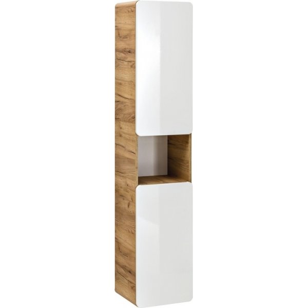 Aruba är en exceptionell möbelserie vars nätta och moderna design är fullständigt förtjusande. Trämönstrade kabinett kombinerat med luckor i vit högglans ger en lyxig spakänsla. De rundade hörnen ger skåpen en originell touch, medan avsaknaden av handtag reflekterar de senaste trenderna. Tvättställsskåpet är en extremt populär och exklusiv enhet. Den rektangulära spegeln med LED-belysning ger helheten en modern hint. Aruba-serien är perfekt för alla som letar efter en enastående, toppmodern lösning till badrummet.