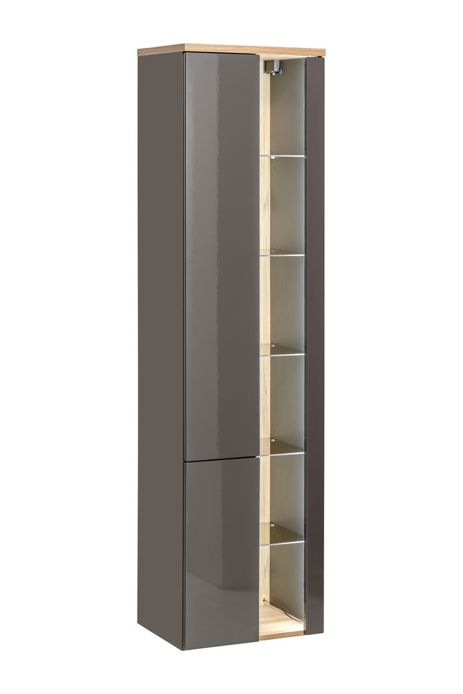 Bahama-serien är inte bara elegant, den är även fantastiskt stilren. Kollektionen består av tvättställsskåp i olika storlekar, spegelskåp och ett sidoskåp med exponerade glashyllor så att du kan visa upp dina fina accessoarer. Det varma träinslaget ger atmosfären av ett elegant spa.
