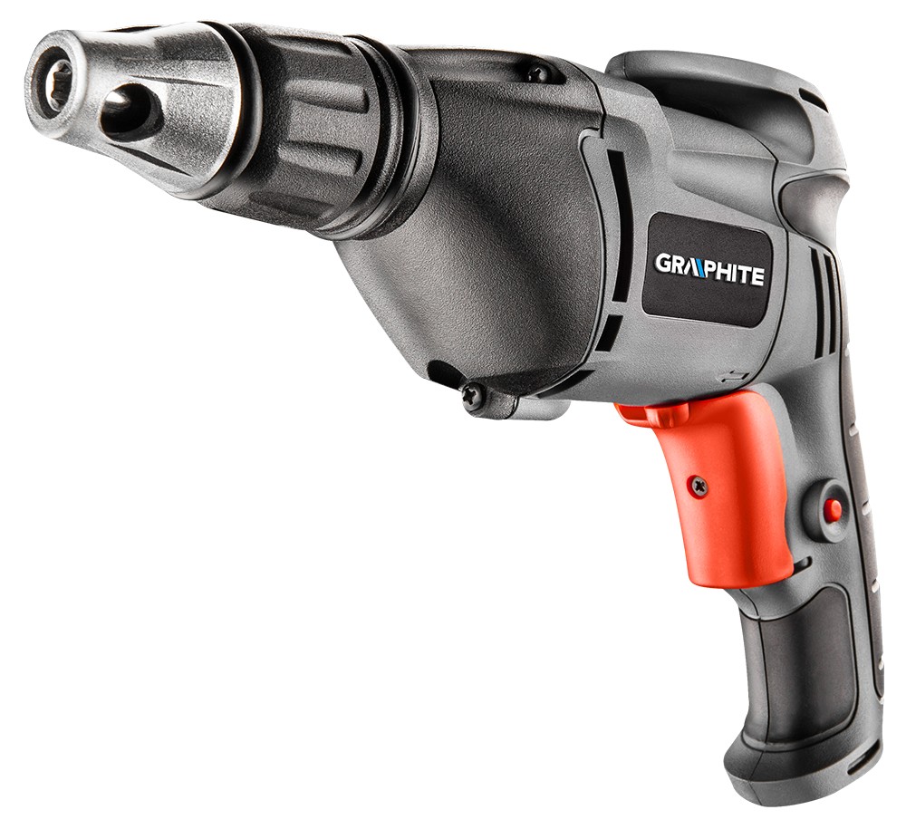 Högkvalitativ elektrisk skruvdragare med dubbel funktion med 520 W motor, utformad för uppsättning av gipsskivor och användning av speciella borrar för trä, metall och plast. Skruvdragaren låter dig ändra rotationsriktning och maximalt spindelvarvtal är 4500 varv/min.