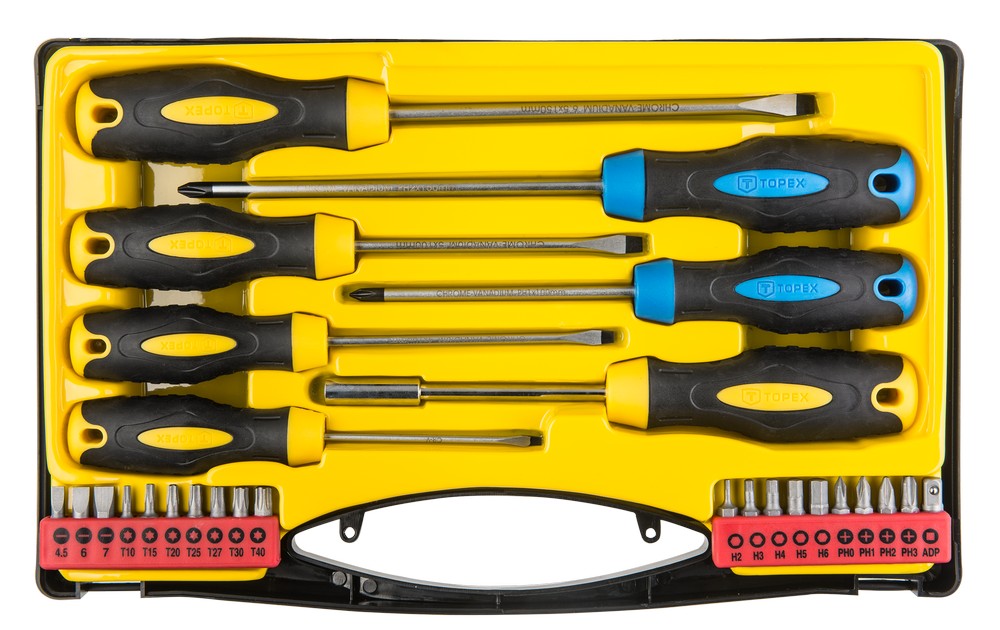 - Skruvmejslar: 3.2 x 75 mm, 4 x 100 mm, 5 x 100 mm, 6.5 x 150 mm, PH1 x 100 mm, PH2 x 150 mm