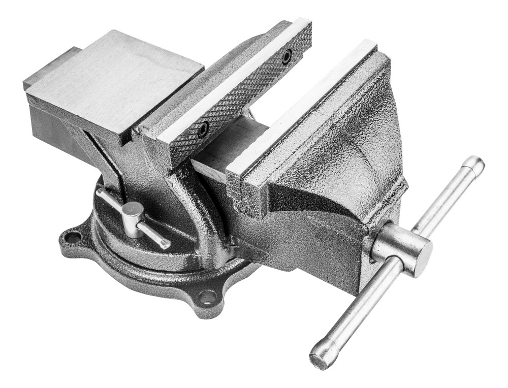 Vridbart skruvstycke med hög tryckkraft och hållbar gjutjärnsdesign. Det vridbara stycket gör det enkelt att fixera ämnet precis där du behöver det för att få en så bekväm arbetsposition som möjligt.